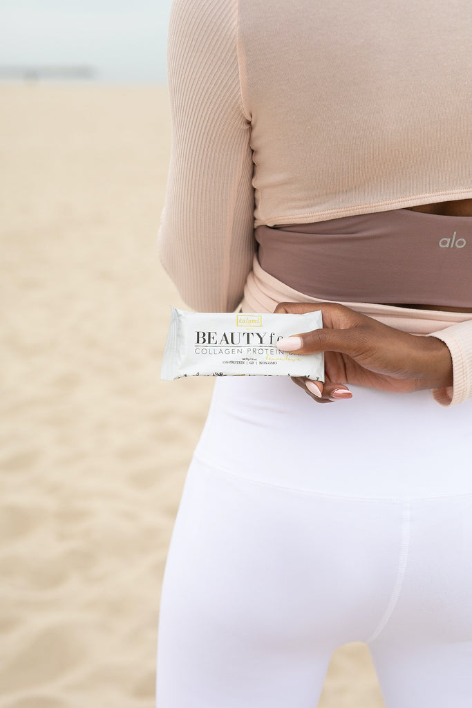 Yes, collagen peptides can help cellulite. There have been a few clinical trials that give us information that shows a direct correlation between collagen peptides and cellulite specifically. In one clinical study, women who received collagen peptides daily for 6 months showed a decrease in cellulite compared to the placebo group, which stayed the same. This is very promising information that shows how collagen can truly change your body and help you achieve the results you want. The specific collagen peptides you need for your body depends on how much cellulite you have, and if you have any other skin issues you want to resolve. Collagen peptides are one of the more popular forms of collagen. They can sometimes be labeled as bioactive collagen peptides, collagen peptides, or hydrolyzed collagen, which is the same thing. This simply refers to how the collagen is broken down. When it is in peptide or hydrolyzed form, it means it has been broken down into very tiny particles, which are easily absorbable and digestible. The great thing about collagen is there are no known side effects. This means it is safe to try and see how it works for you. There are also more types of collagen besides collagen peptides. You can try different types and see what works best for you. We discuss collagen peptides and hydrolyzed collagen so much because they are typically regarded as the best types of collagen. This is because of what we mentioned previously: they are broken down more. This means you can see better results due to the fact that your body can actually absorb these particles. Collagen is helpful for so many varying issues beyond just our skin; you can try collagen peptides to help with tons of other health issues and improve your skin at the same time. A great way to incorporate collagen into your daily life is through supplements. To get your daily dose of collagen, you can try our Kalumi BEAUTYfood bars. They contain 8 grams of hydrolyzed marine collagen and sweet potato, containing betacarotene- a precursor of vitamin A, as well as cocoa butter, which contains antioxidants and polyphenols.